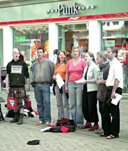 Aubrook-ChorDer "Aubrook-Chor" aus Kiel singt zweifelhaftes Liedgut in unverständlichen Sprachen, rustikal vorgetragen. Das Sofa-Quintett aus Kampfsopran, Mezzomix, Tenoranwärter cum zweimal Brumm erfreut sich und andere mit Saufliedern, schaurigen Balladen und Schmachtfetzen in zungenbrecherischen Mundarten von isländisch bis georgisch. Ergänzt wird das Programm durch noch unverständlichere Ansagen, kleine Geschichten, etwas passend Abseitigem aus dem Duo Schmarowotsnik-Repertoire mit Oboe und/oder Quetsche und, wenn ihr nicht artig seid, auch einem Mitsing-Teil.Der Eintritt ist frei, Spende in den Hut für's GuteHaus willkommen! |