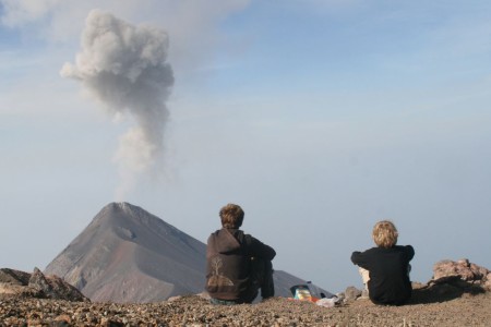 Die größten Exemplare werden dort bis zu 20 Meter hoch! Ganz im Süden, am Wendekreis des Krebses arbeitete er 2 Monate an einem internationalen Freiwilligenprojekt und lehrte und lernte Lehmbau. Es wurde ein Gebäude in Earthbagbauweise errichtet wobei die Wände aus lehmgefüllten Säcken gebaut werden. Eine hierzulande noch recht unbekannte und sehr einfache Technik, die für den Wiederaufbau von Kriegsgebieten und die Mondbebauung entwickelt wurde. An den Wochenenden wurden Wale beobachtet, gewandert, in heißen Quellen gebadet... Danach trampte Friedrich Bielenstein mit dem Fahrrad auf einer Segelyacht 700 Kilometer über den Pazifik zum Festland. Mit Pickups, radelnd und per Bus ging es dann ins subtropische Yukatan wo er seinen 11jährigen Sohn Jeromir vom Flughafen abholte. Per Bus, Boot und trampend reisten Vater und Sohn einen Monat lang durch Belize und Guatemala. Sie begegneten verschiedensten Sprachen und Völkern und reisten mit abenteuerlichen Verkehrsmitteln. Sie erlebten sechs Meter hohe Pazifikwellen, bestiegen einen 4000m hohen Vulkan und sahen von oben andere Vulkanausbrüche, aßen frische Kokosnüsse an der Karibik, bestiegen eine Mayapyramide und suchten erfolglos paddelnd nach Krokodilen. |