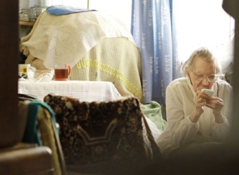 Wir treffen die Hauptfigur des Films, Frau Krystyna, in ihrer kleinen Wohnung voller Bücher, Notizbücher und handgeschriebener Zettel.