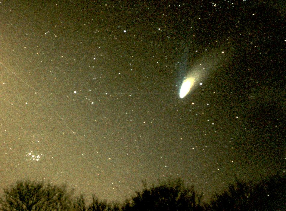 15-20 Sek. auf 1600 ASA (Fuji) am 10.4.97 um 22.30 Uhr MESZ (l.u.: Plejaden)